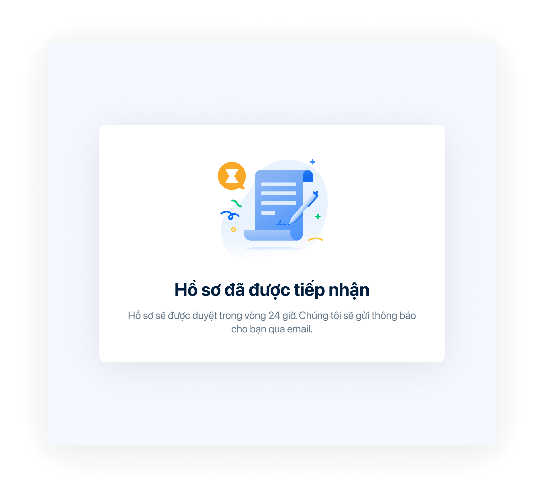 Zalopay tiến hành thẩm định hồ sơ trong vòng 24h và phản hồi kết quả qua email đã đăng ký của Đối tác.